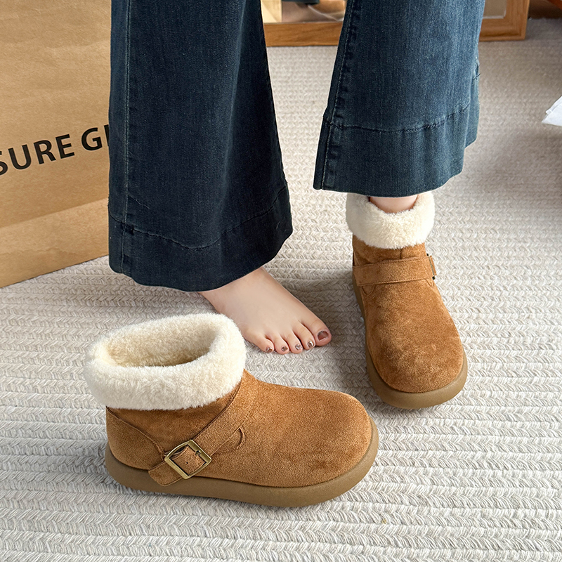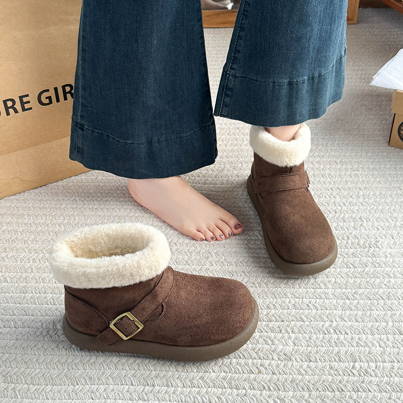 女靴子靴子韩版潮时尚保暖防滑绒面短靴圆头