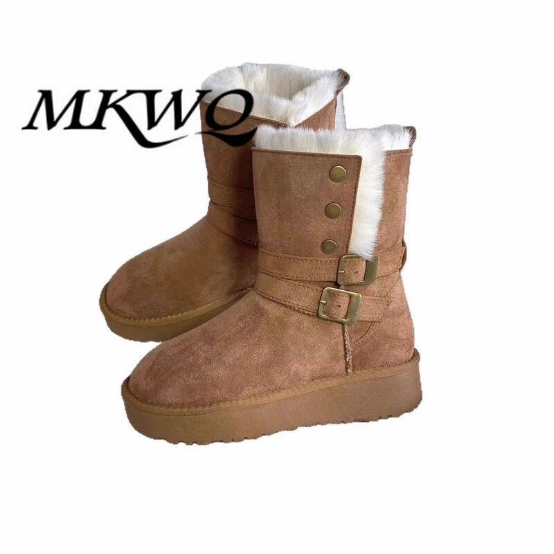 女靴子靴子韩版潮时尚保暖防滑绒面短靴圆头