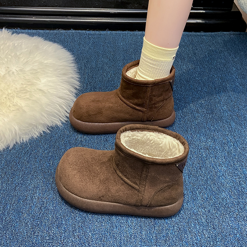 女靴子靴子韩版潮时尚保暖防滑绒面短靴圆头