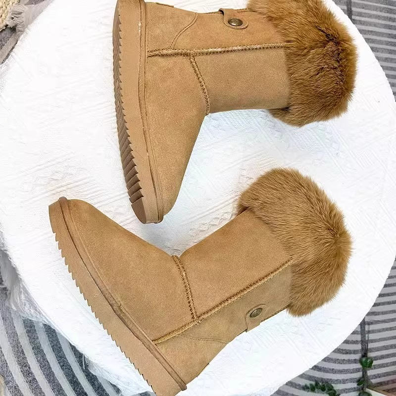 女靴子靴子韩版潮时尚保暖防滑绒面短靴圆头
