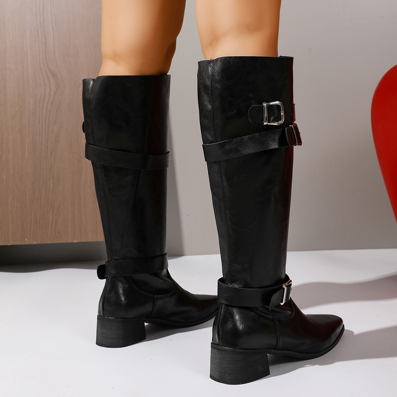 女靴子靴子韩版潮时尚保暖防滑长靴圆头粗跟