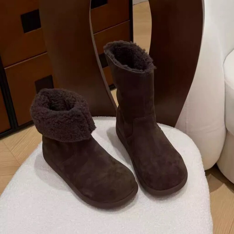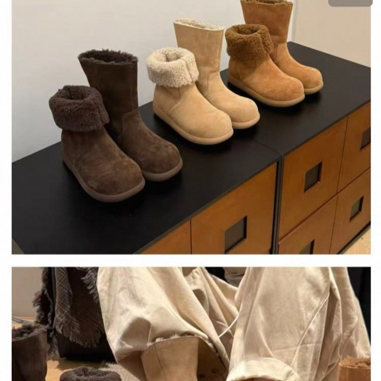 女靴子靴子韩版潮时尚保暖防滑绒面短靴圆头