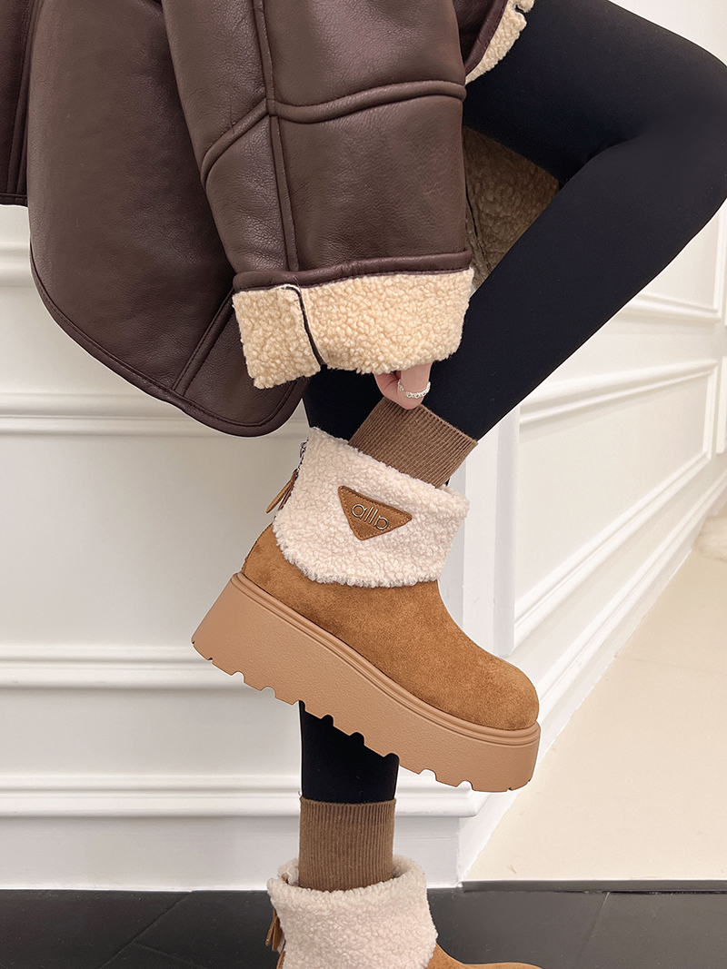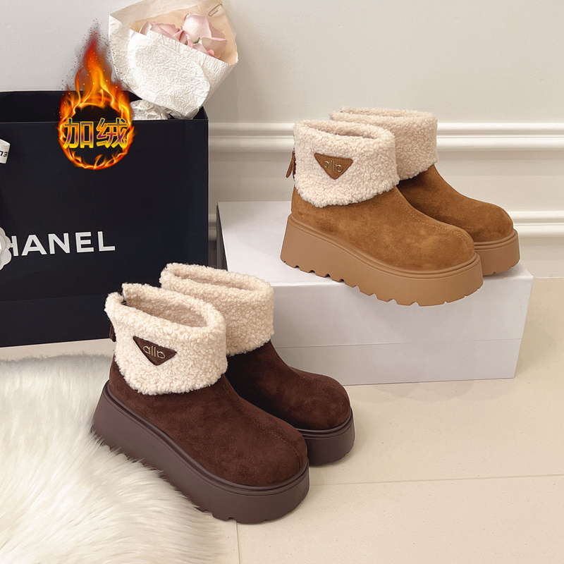 女靴子靴子韩版潮时尚保暖防滑绒面短靴圆头