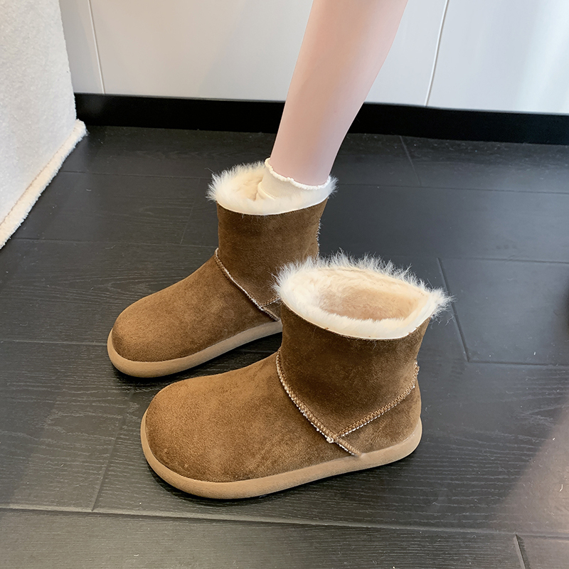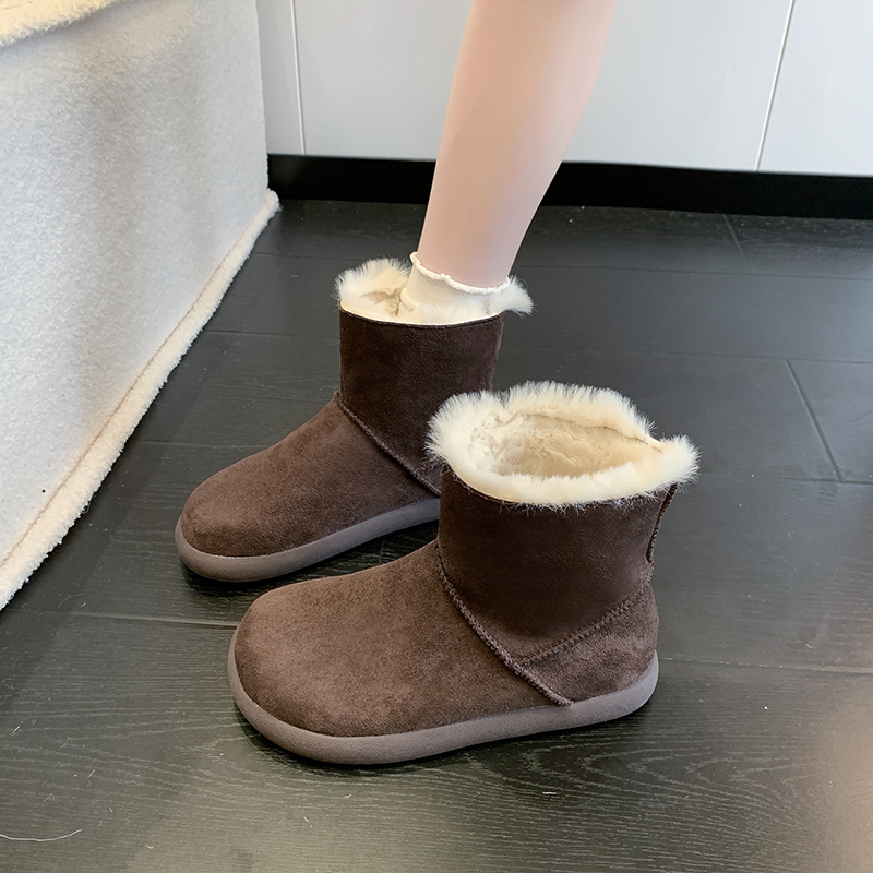 女靴子靴子韩版潮时尚保暖防滑绒面短靴圆头