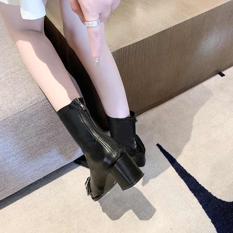 女靴子靴子韩版潮时尚保暖防滑短靴圆头粗跟