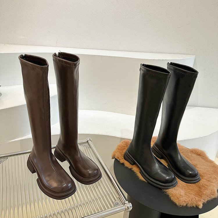 女靴子靴子韩版潮时尚保暖防滑长靴圆头粗跟