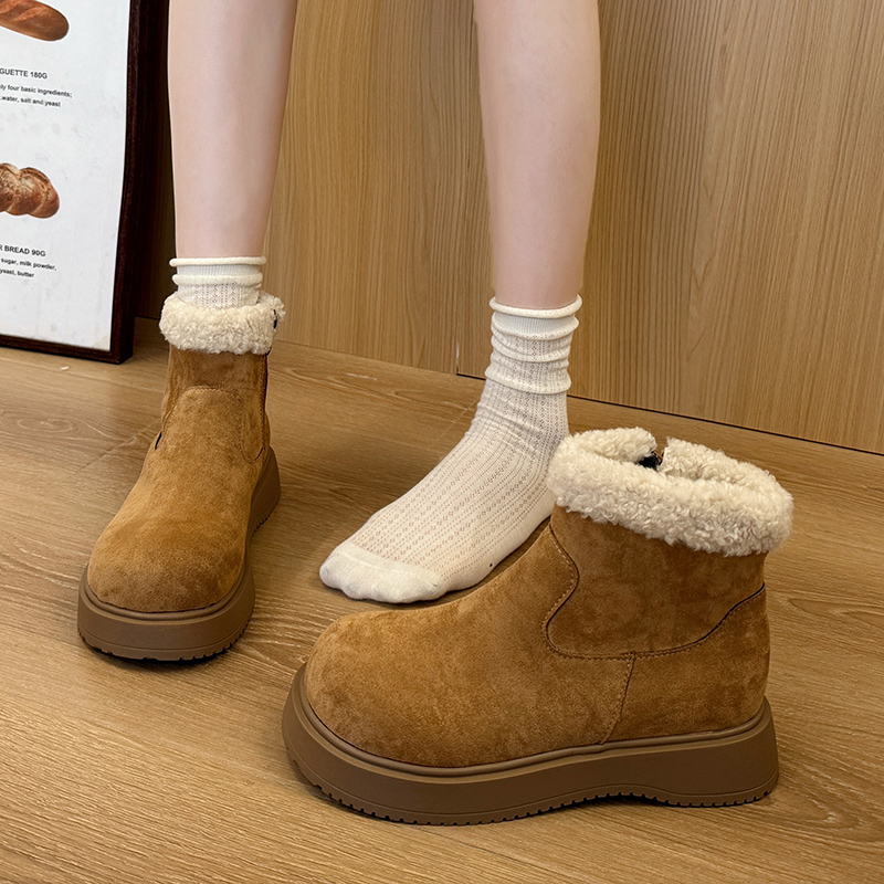 女靴子靴子韩版潮时尚保暖防滑绒面短靴圆头