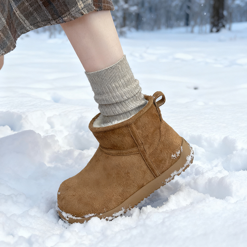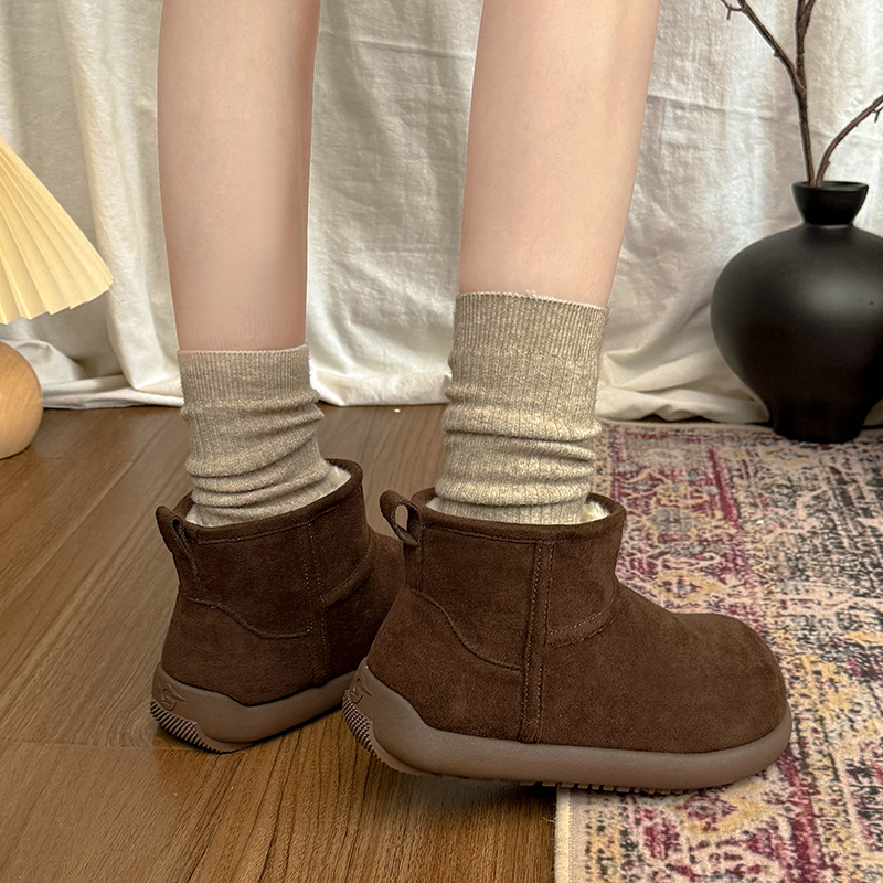 女靴子靴子韩版潮时尚保暖防滑绒面短靴圆头