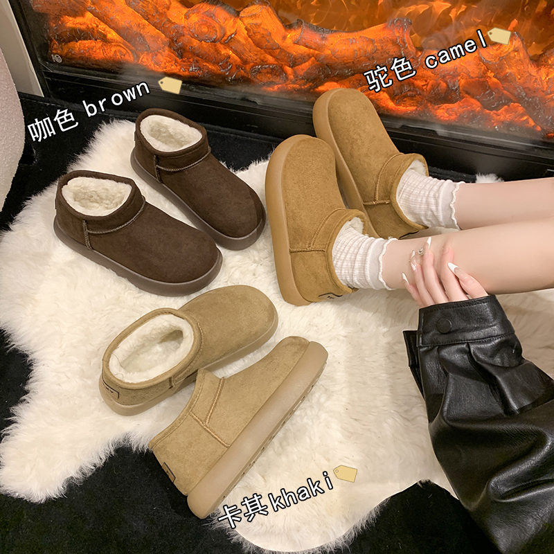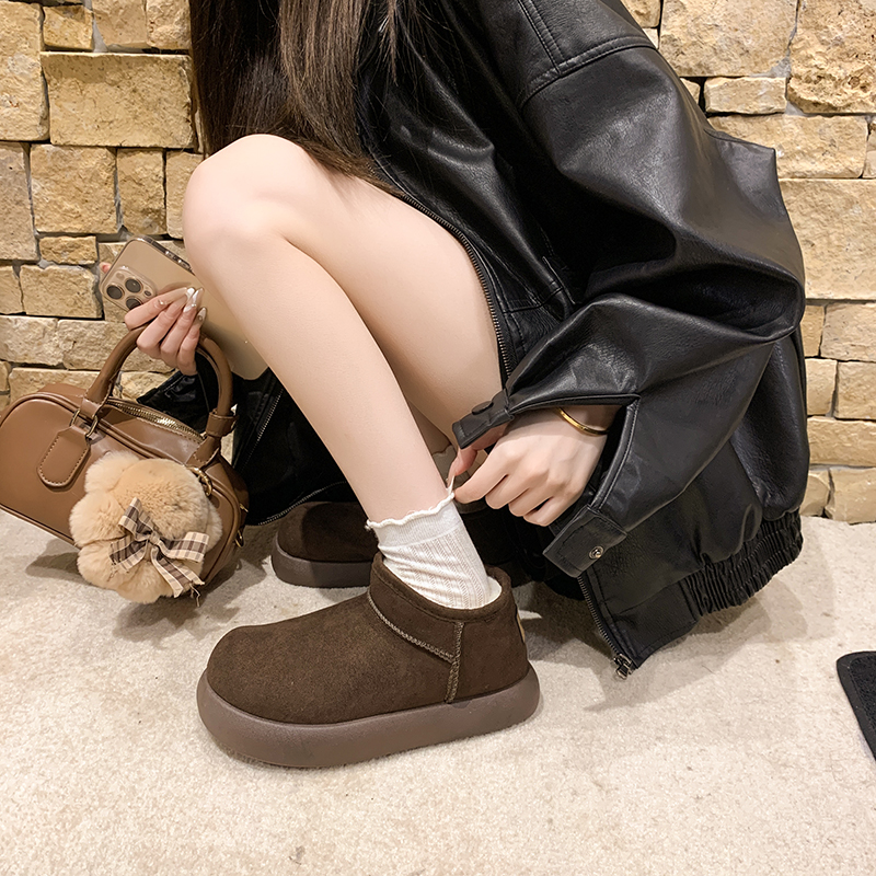 女靴子靴子韩版潮时尚保暖防滑绒面短靴圆头