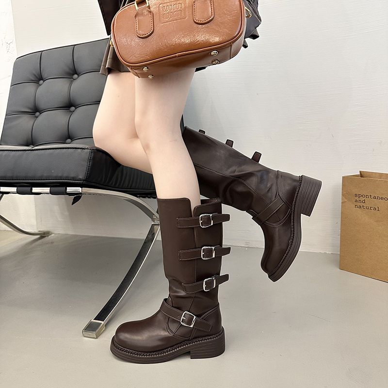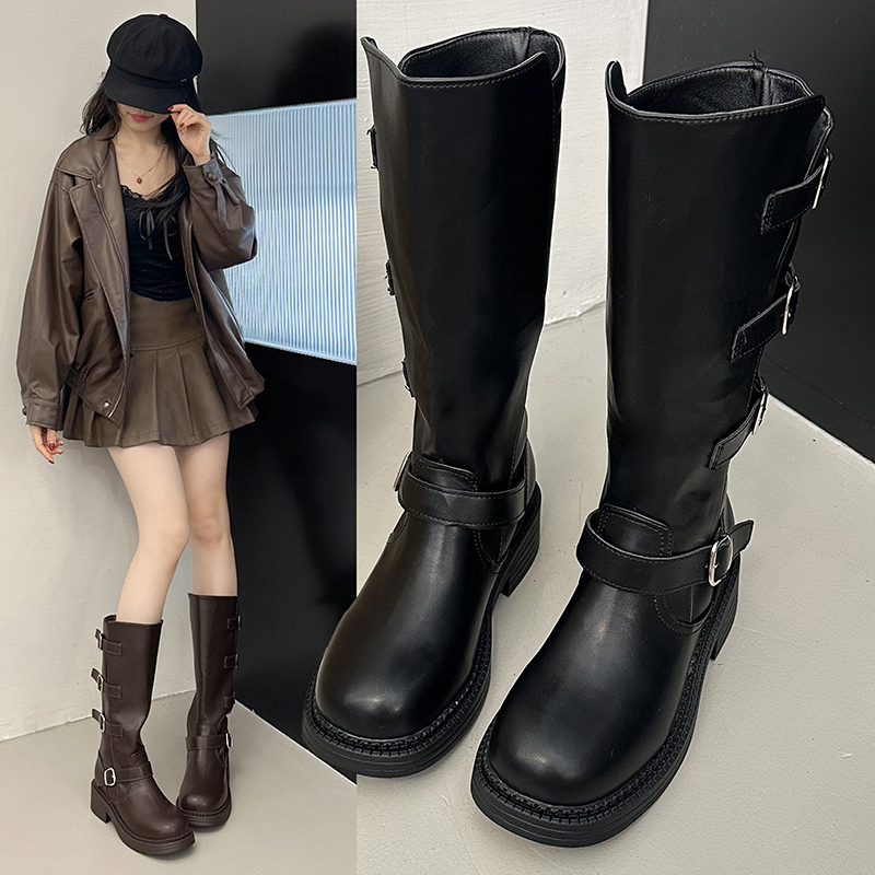 女靴子靴子韩版潮时尚保暖防滑长靴圆头粗跟