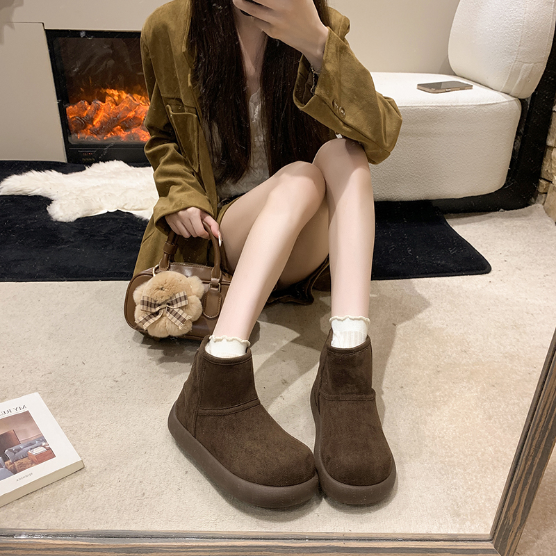 女靴子靴子韩版潮时尚保暖防滑绒面短靴圆头