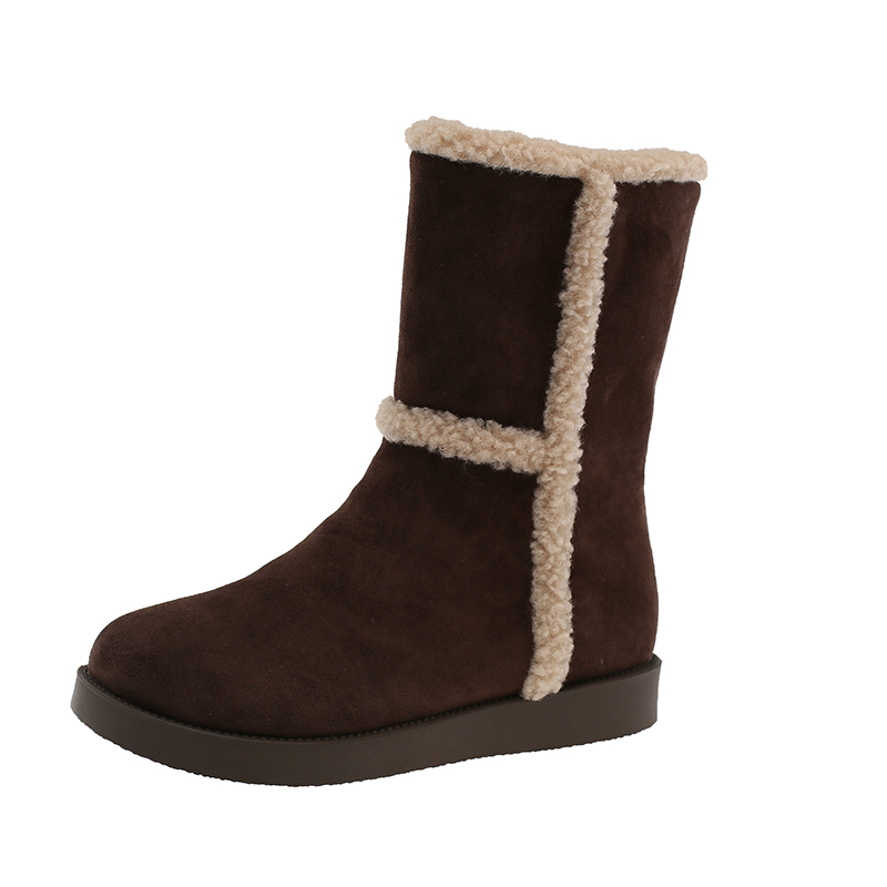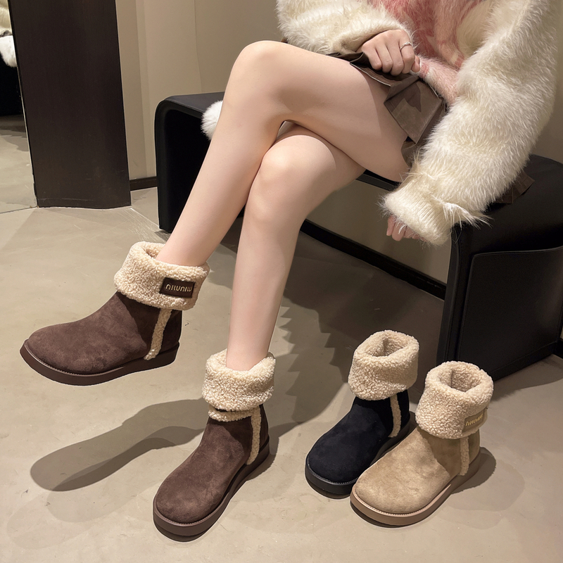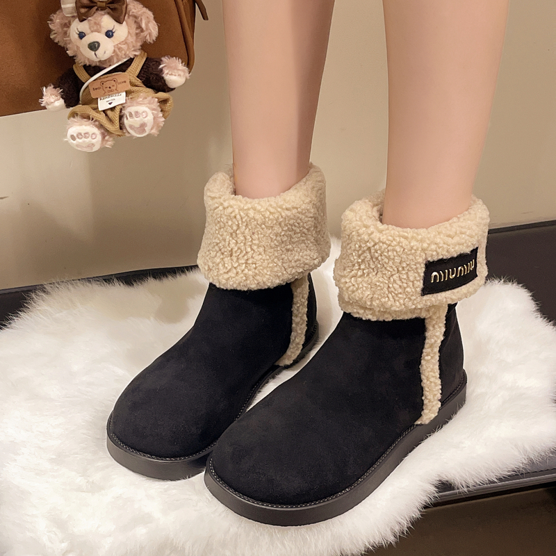 女靴子靴子韩版潮时尚保暖防滑绒面短靴圆头