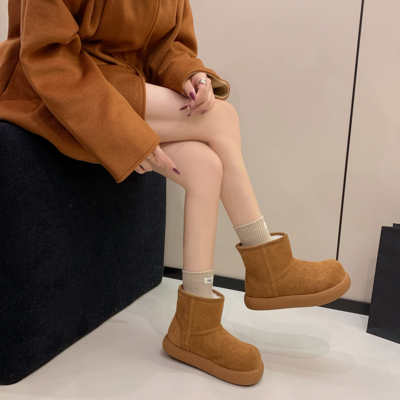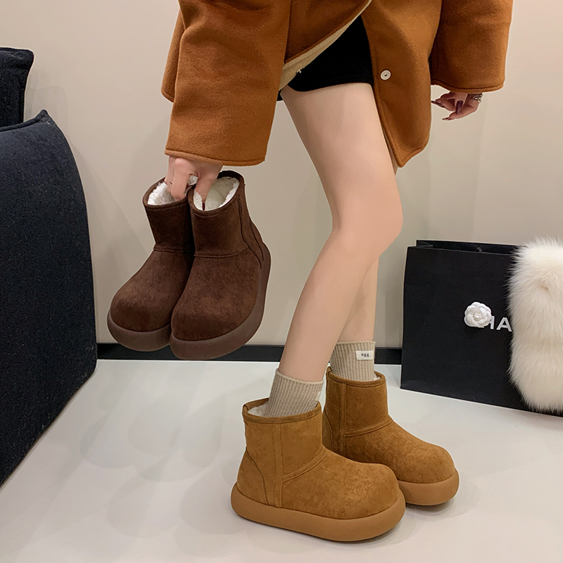 女靴子靴子韩版潮时尚保暖防滑绒面短靴圆头
