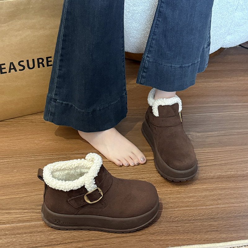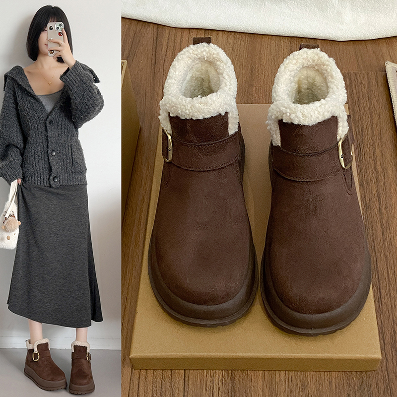 女靴子靴子韩版潮时尚保暖防滑绒面短靴圆头