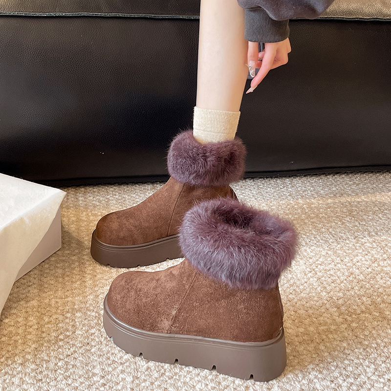 女靴子靴子韩版潮时尚保暖防滑绒面短靴圆头