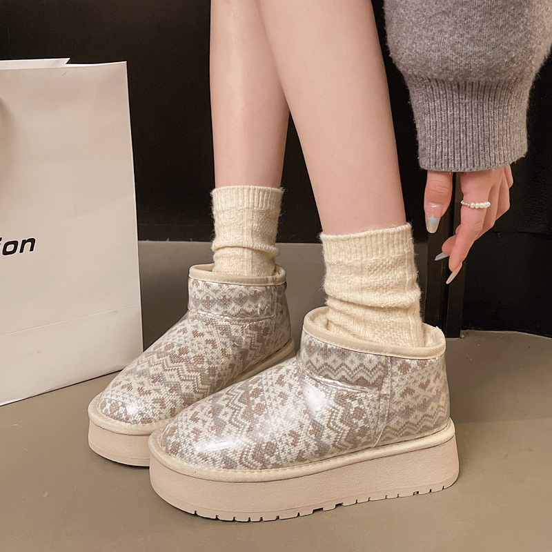 女靴子靴子韩版潮时尚保暖防滑绒面短靴圆头