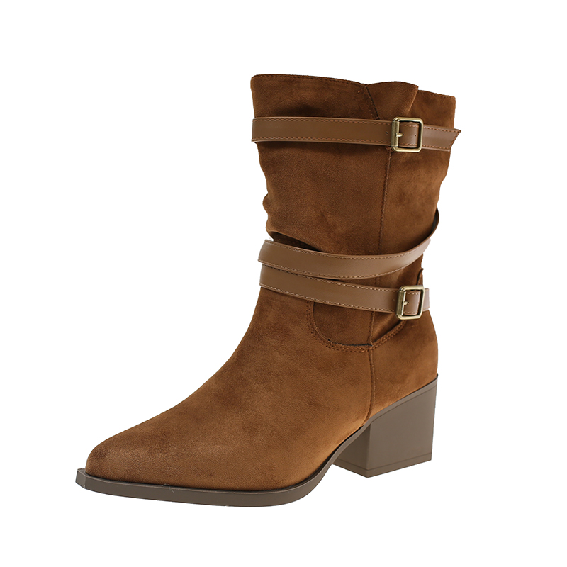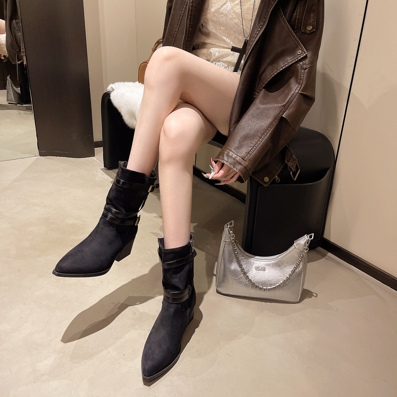 女靴子靴子韩版潮时尚保暖防滑长靴圆头粗跟