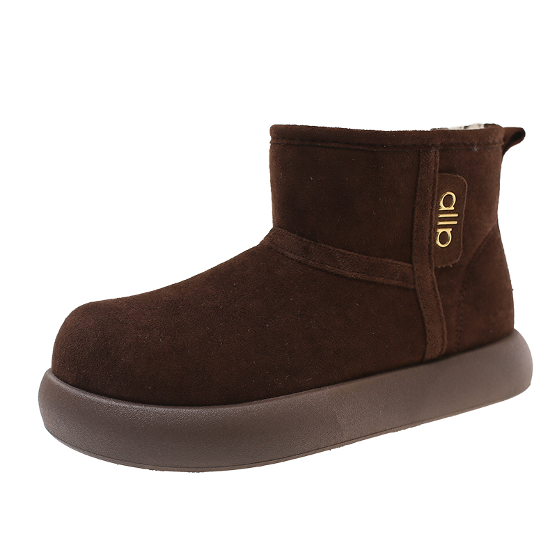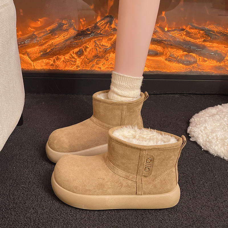 女靴子靴子韩版潮时尚保暖防滑绒面短靴圆头
