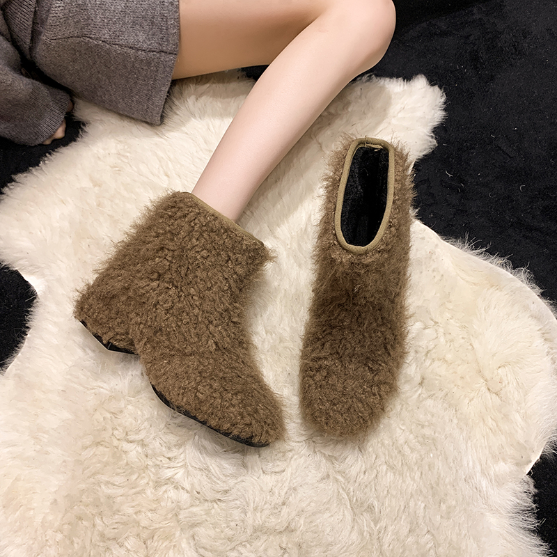 女靴子靴子韩版潮时尚保暖防滑绒面短靴圆头