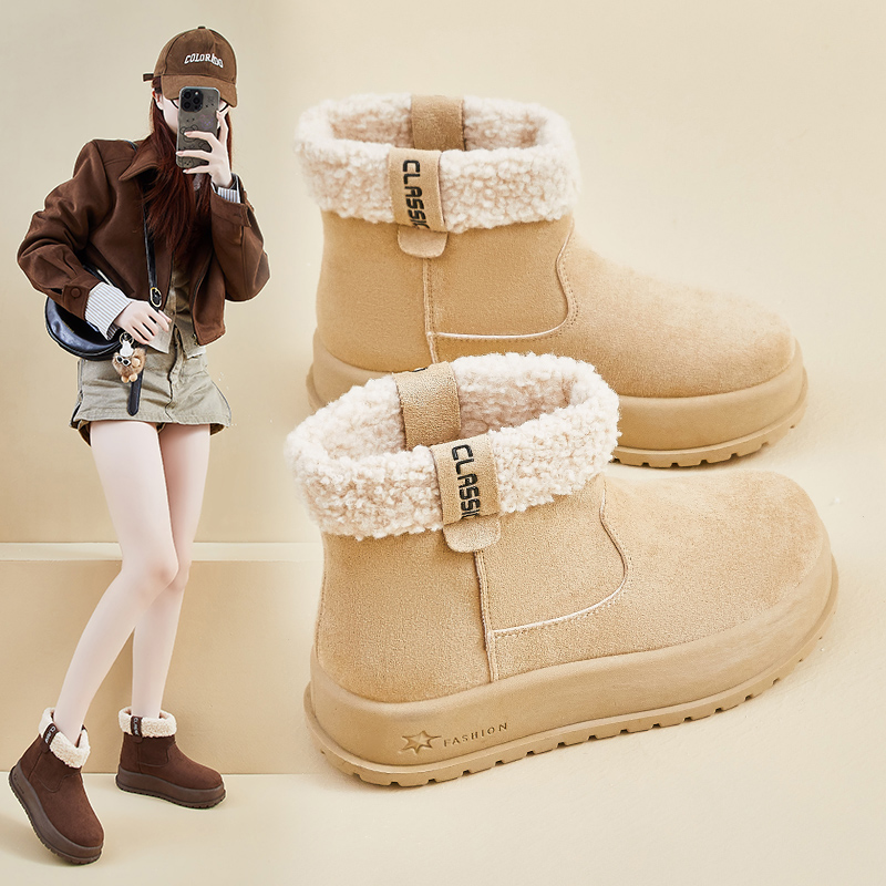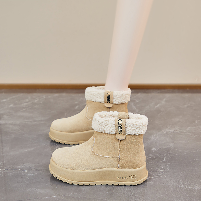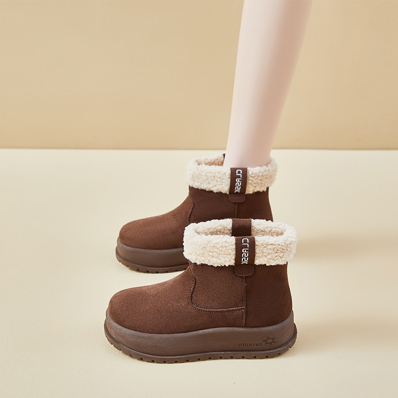 女靴子靴子韩版潮时尚保暖防滑绒面短靴圆头
