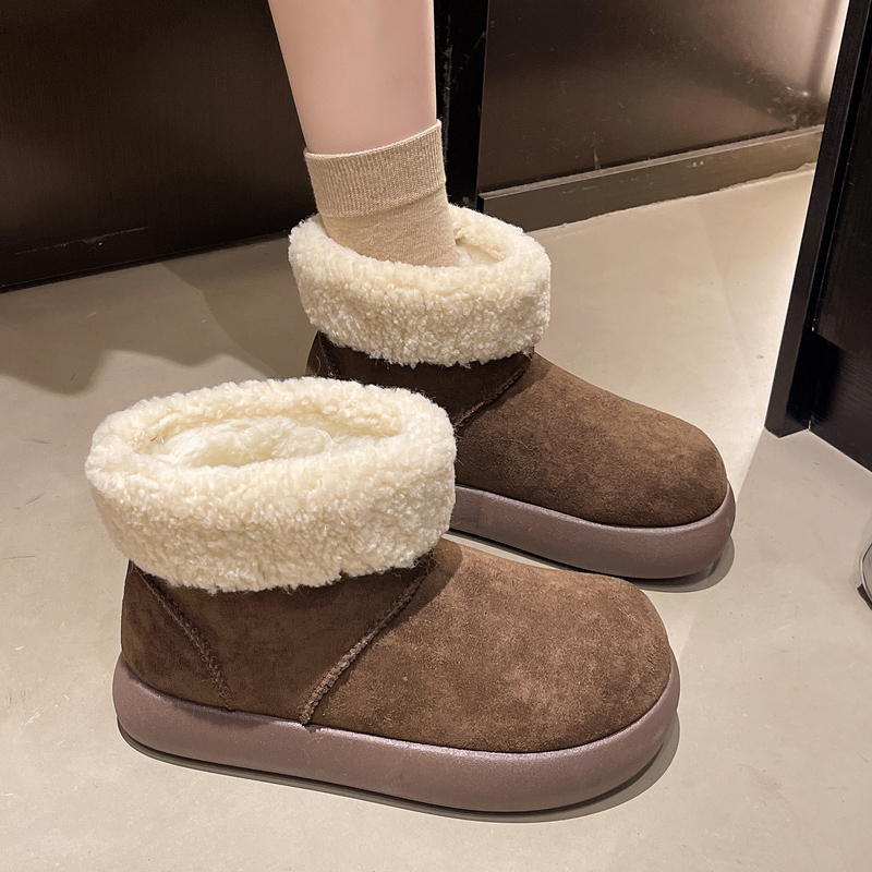 女靴子靴子韩版潮时尚保暖防滑绒面短靴圆头