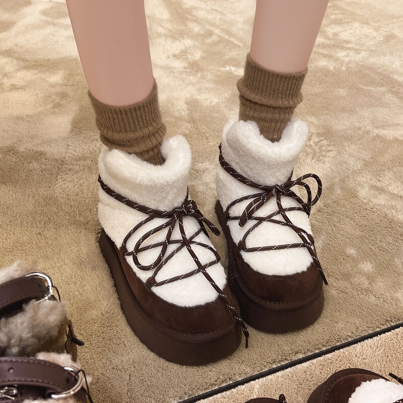 女靴子靴子韩版潮时尚保暖防滑绒面短靴圆头