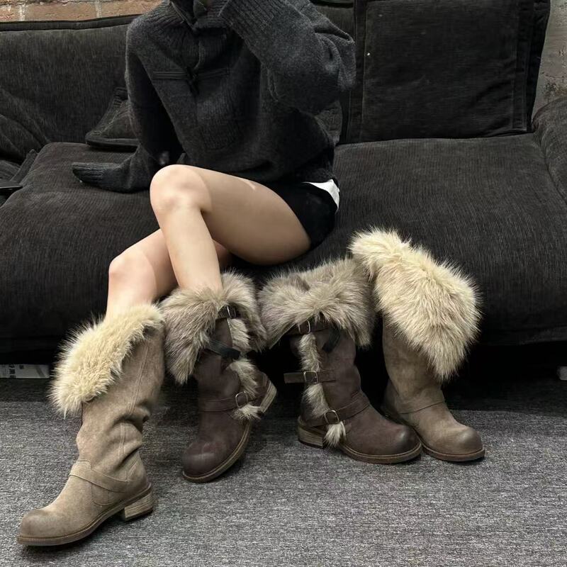 女靴子靴子韩版潮时尚保暖防滑绒面短靴圆头
