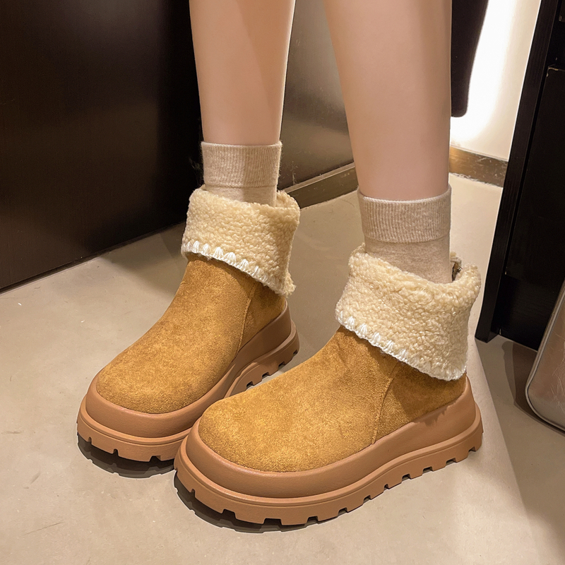 女靴子靴子韩版潮时尚保暖防滑绒面短靴圆头