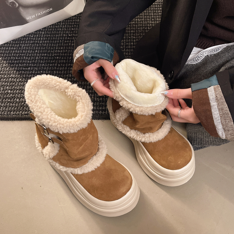 女靴子靴子韩版潮时尚保暖防滑绒面短靴圆头