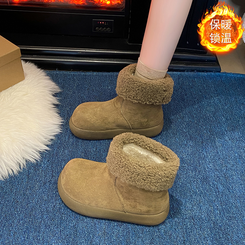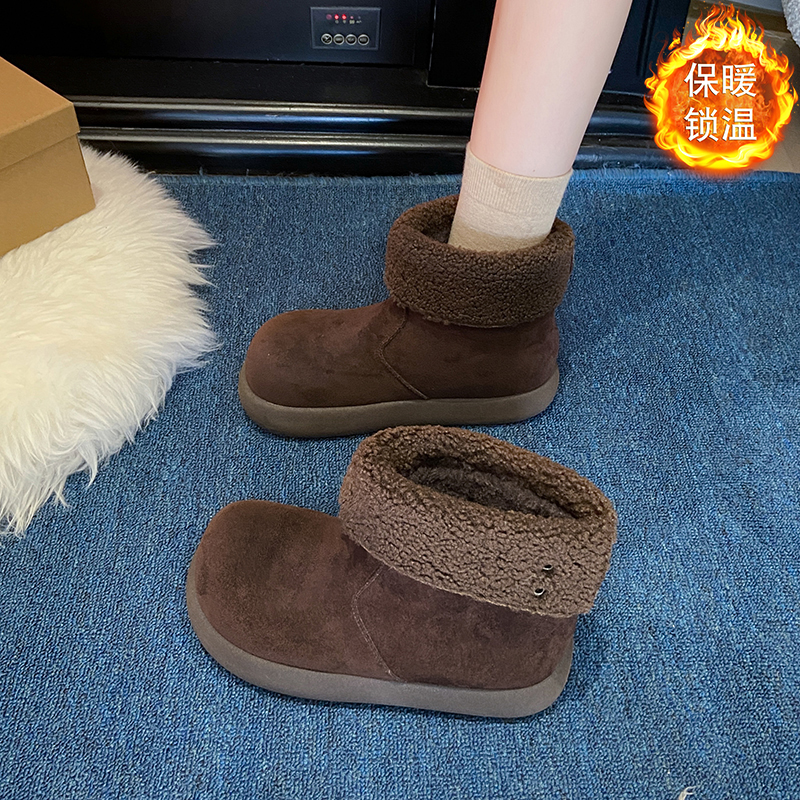 女靴子靴子韩版潮时尚保暖防滑绒面短靴圆头