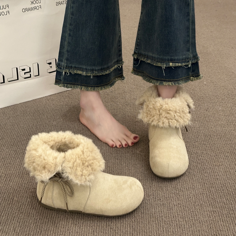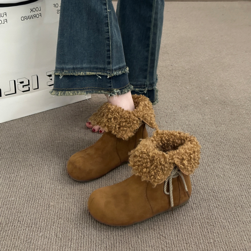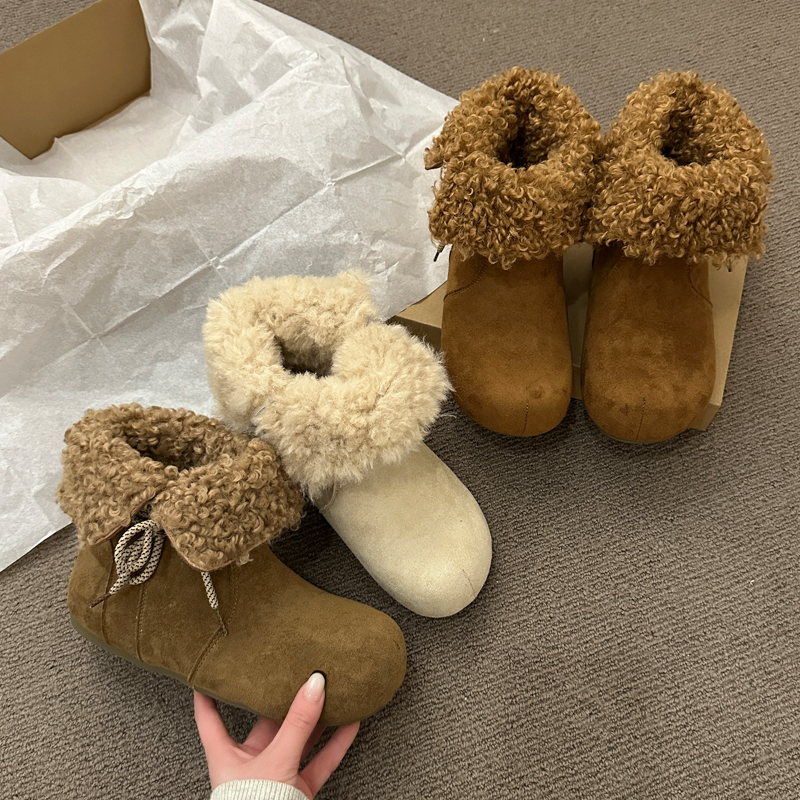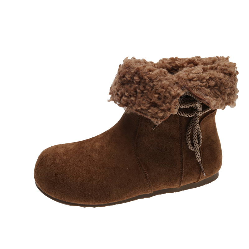 女靴子靴子韩版潮时尚保暖防滑绒面短靴圆头