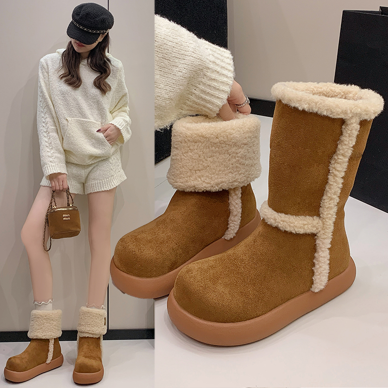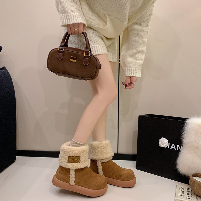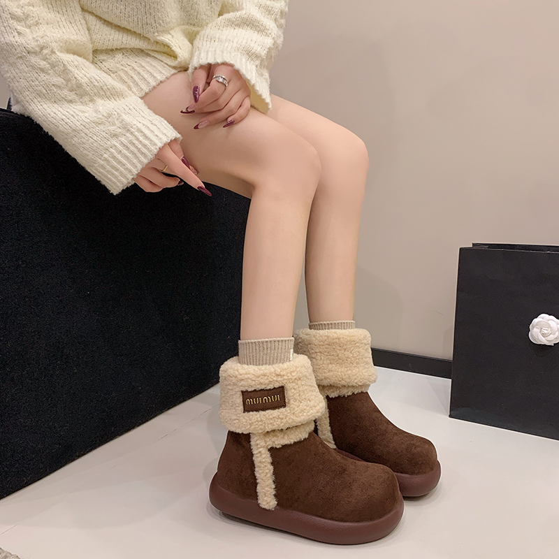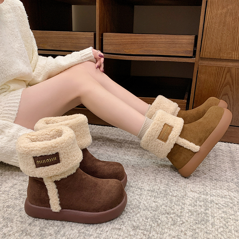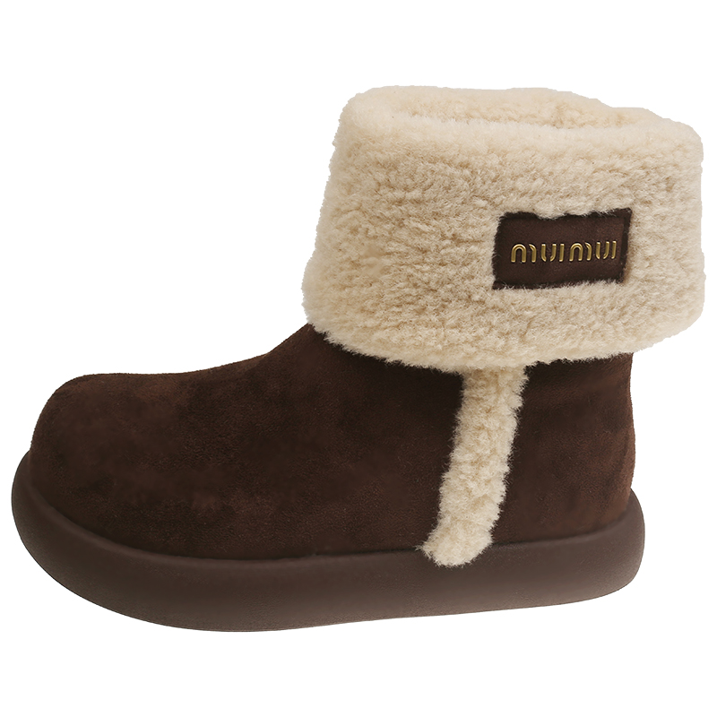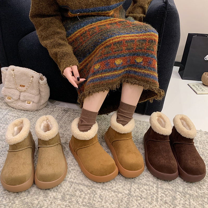女靴子靴子韩版潮时尚保暖防滑绒面短靴圆头