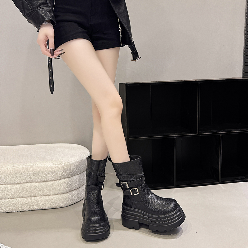 女靴子靴子韩版潮时尚保暖防滑短靴圆头粗跟