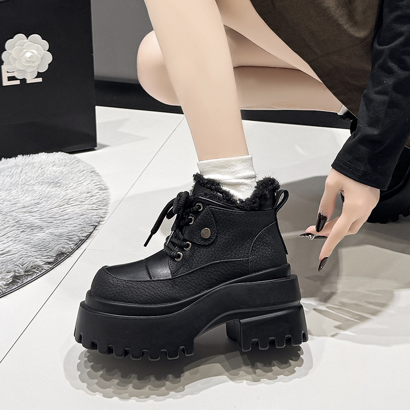 女靴子靴子韩版潮时尚保暖防滑短靴圆头粗跟