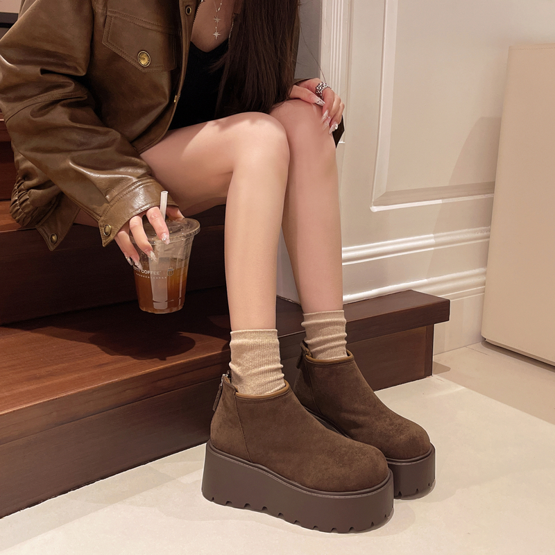 女靴子靴子韩版潮时尚保暖防滑短靴圆头粗跟