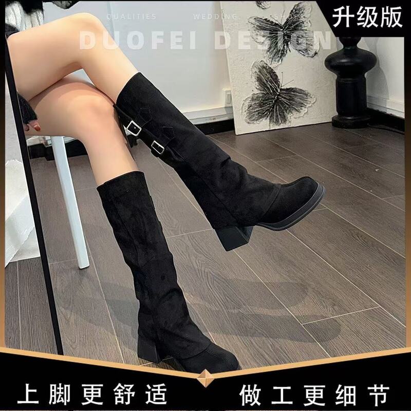 女靴子靴子韩版潮时尚保暖防滑长靴圆头粗跟