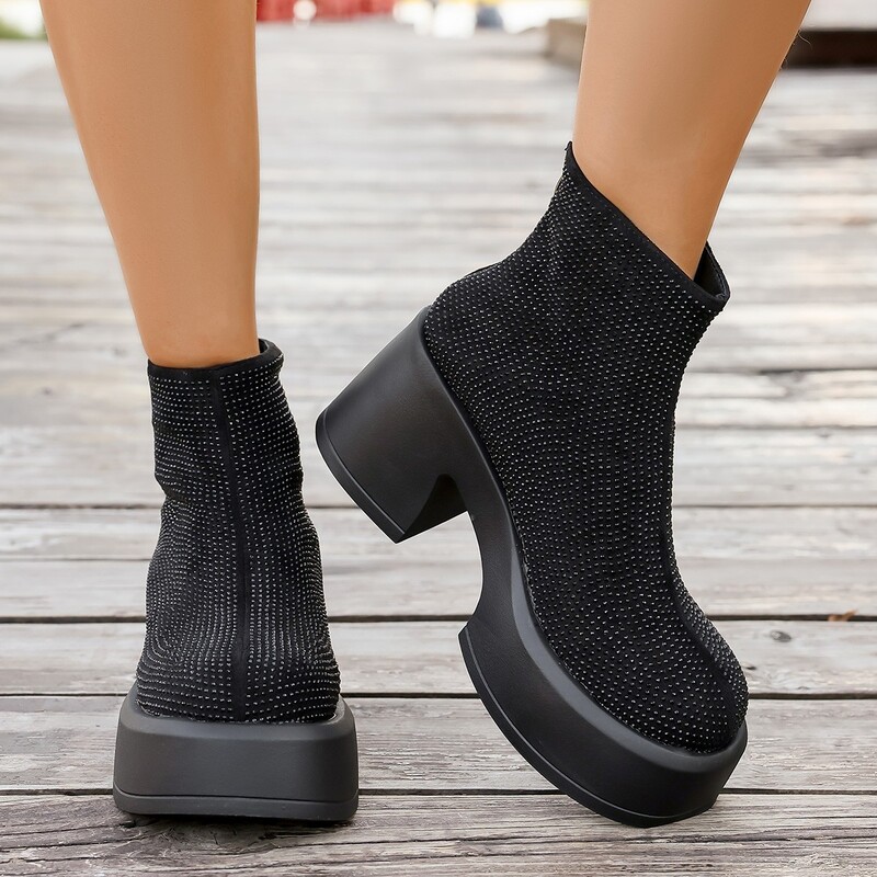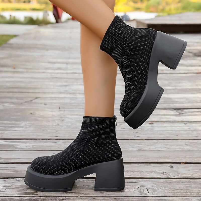 女靴子靴子韩版潮时尚保暖防滑短靴圆头粗跟