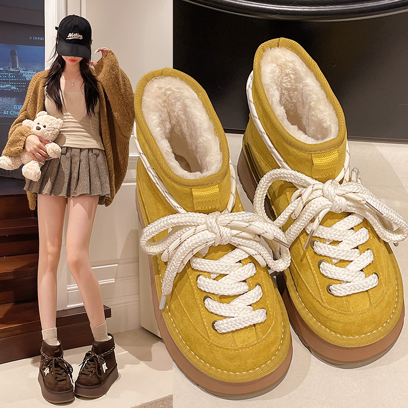 女靴子靴子韩版潮时尚保暖防滑短靴圆头粗跟