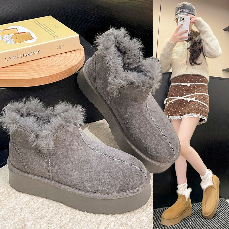 女靴子靴子韩版潮时尚保暖防滑绒面短靴圆头