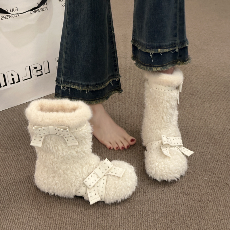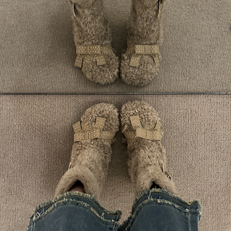 女靴子靴子韩版潮时尚保暖防滑绒面短靴圆头