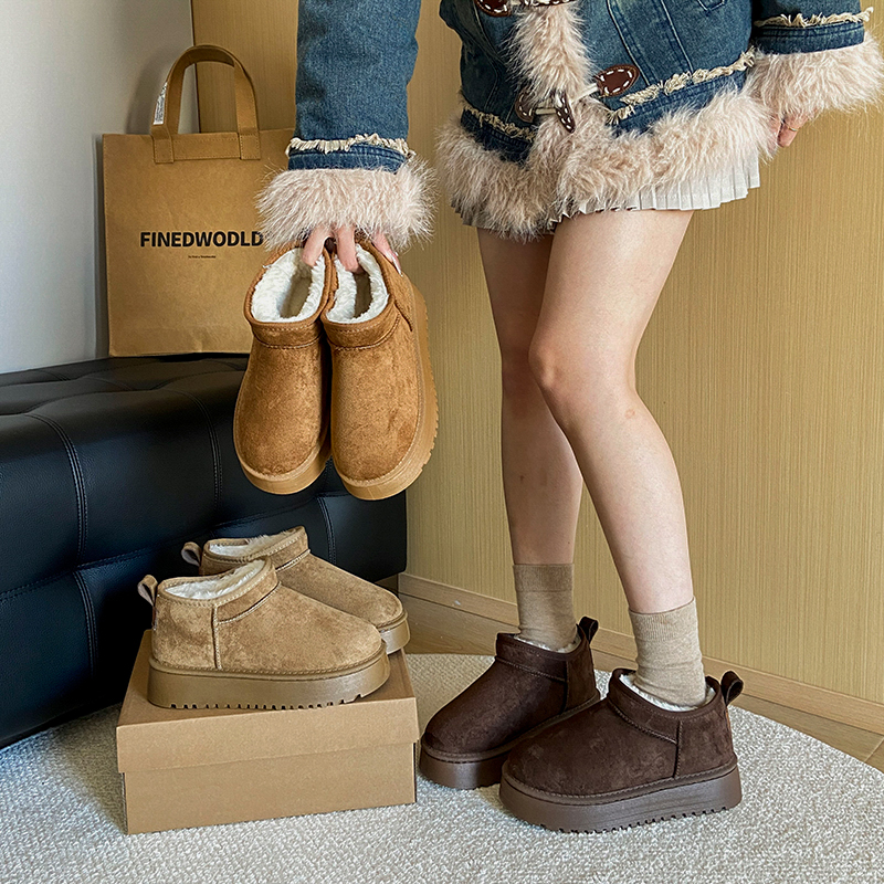 女靴子靴子韩版潮时尚保暖防滑绒面短靴圆头