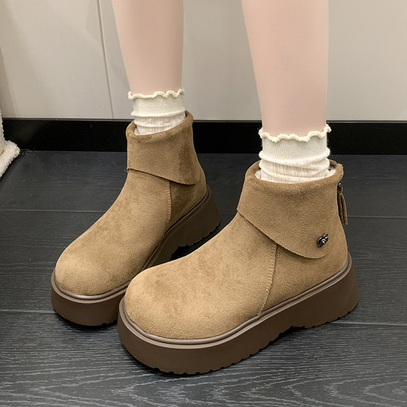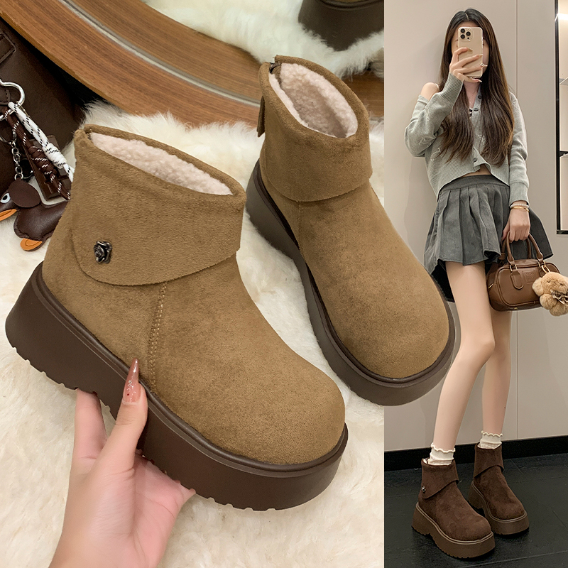女靴子靴子韩版潮时尚保暖防滑短靴圆头粗跟
