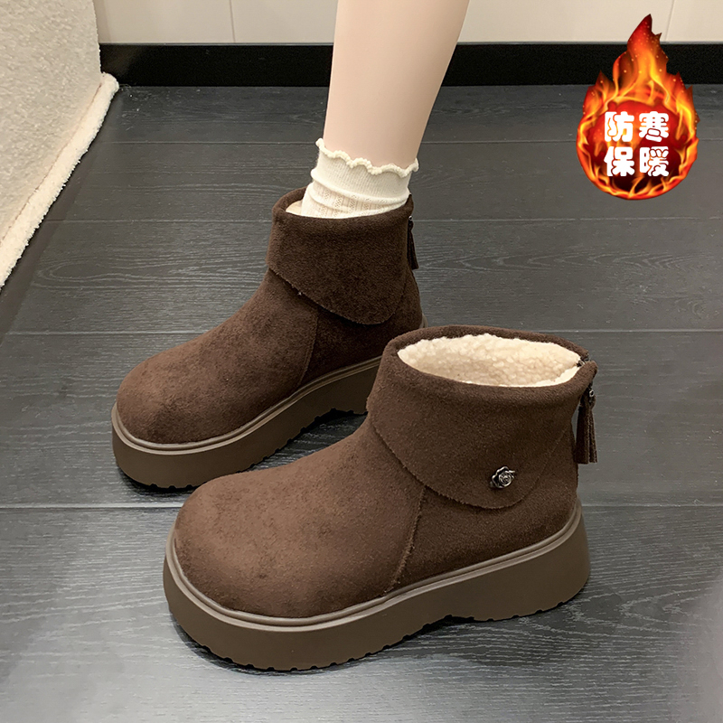 女靴子靴子韩版潮时尚保暖防滑短靴圆头粗跟