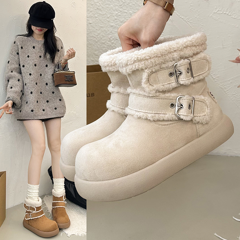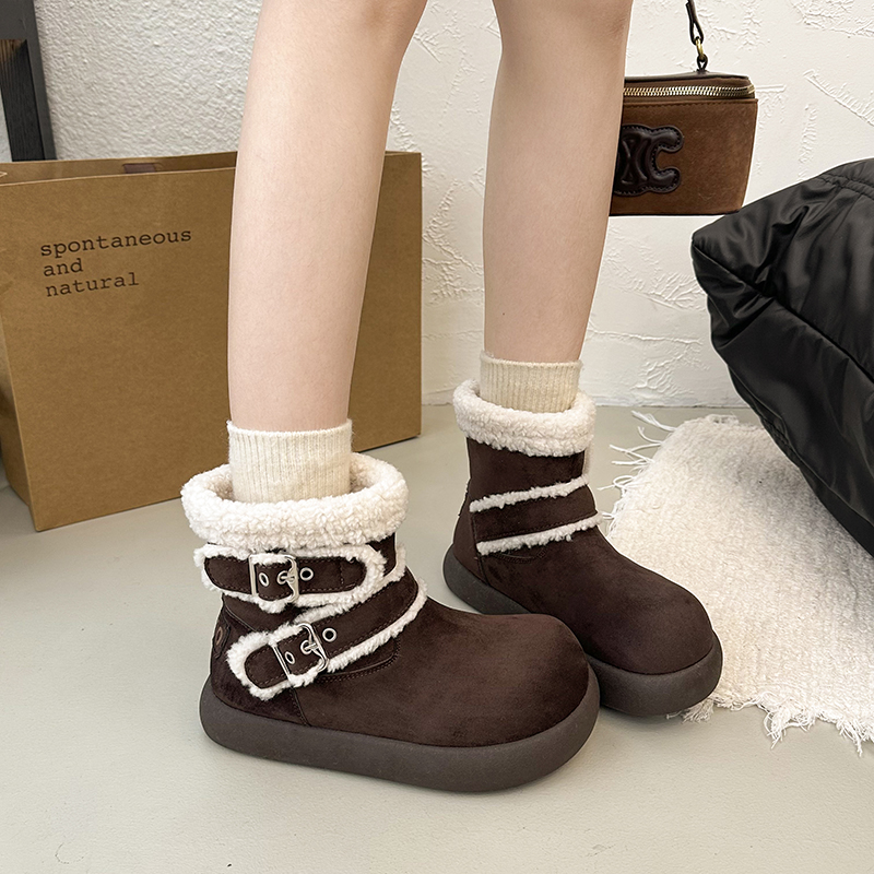 女靴子靴子韩版潮时尚保暖防滑绒面短靴圆头
