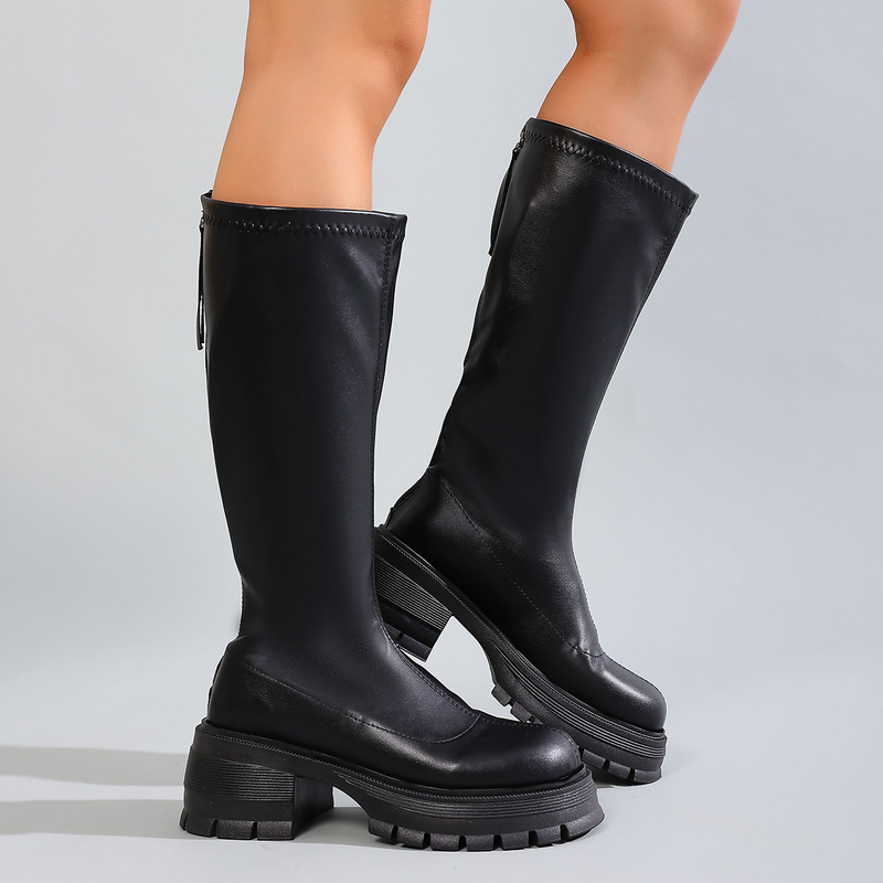女靴子靴子韩版潮时尚保暖防滑长靴圆头粗跟