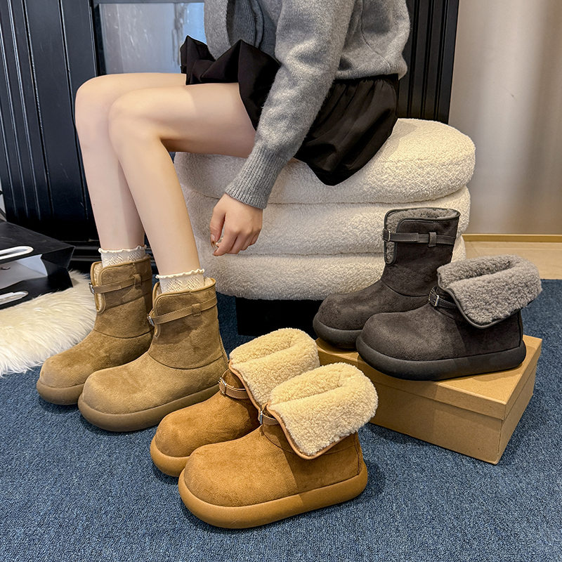 女靴子靴子韩版潮时尚保暖防滑绒面短靴圆头