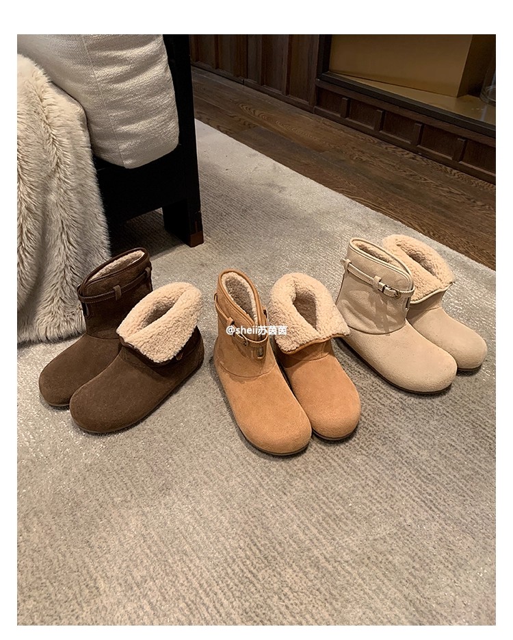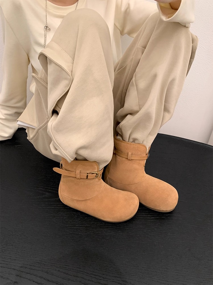 女靴子靴子韩版潮时尚保暖防滑绒面短靴圆头