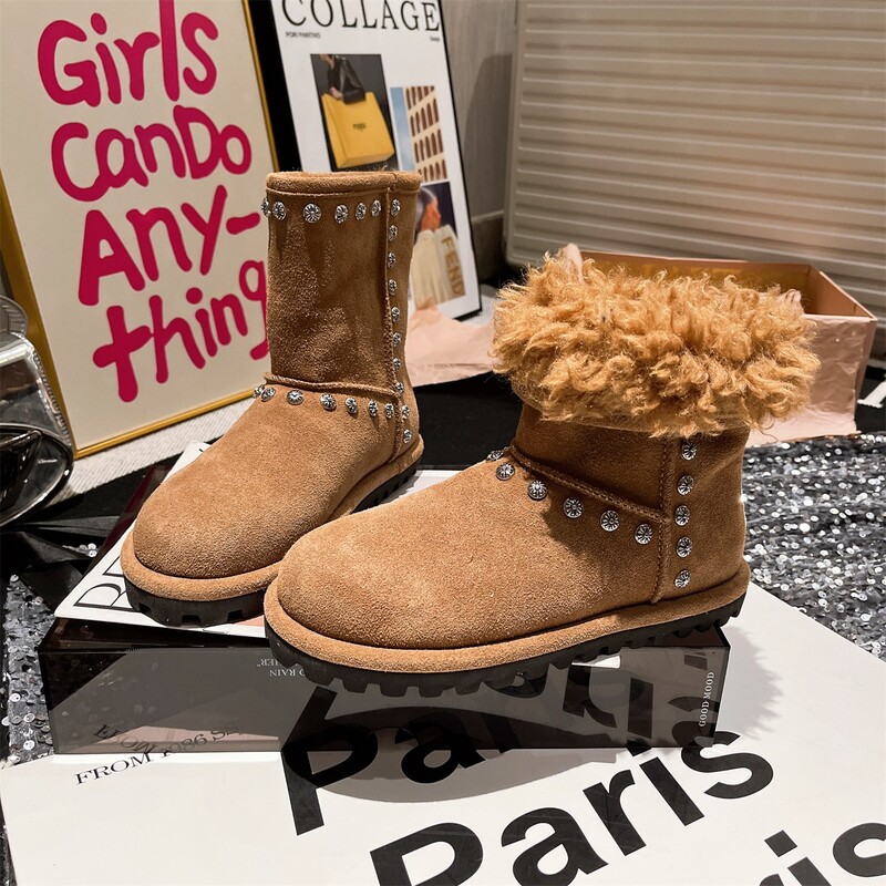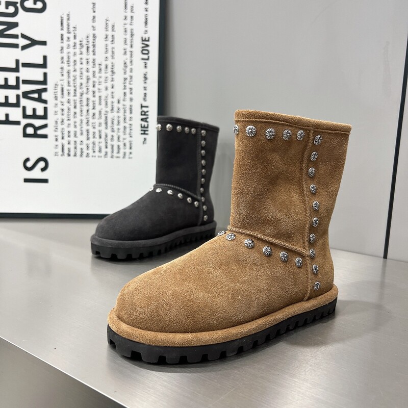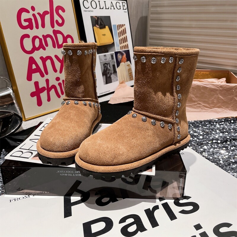 女靴子靴子韩版潮时尚保暖防滑绒面短靴圆头
