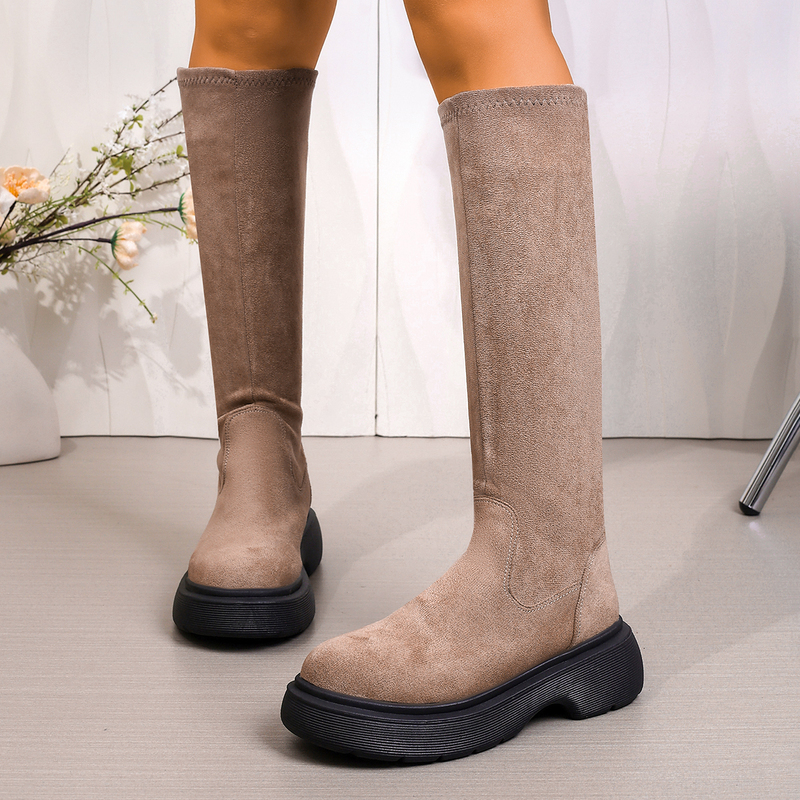 女靴子靴子韩版潮时尚保暖防滑长靴圆头粗跟