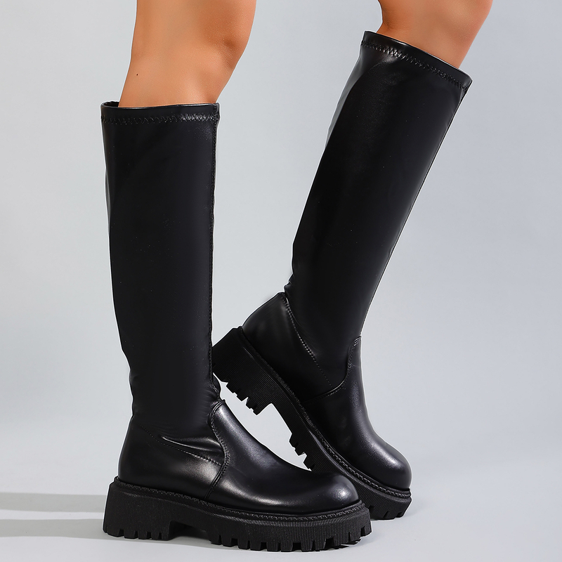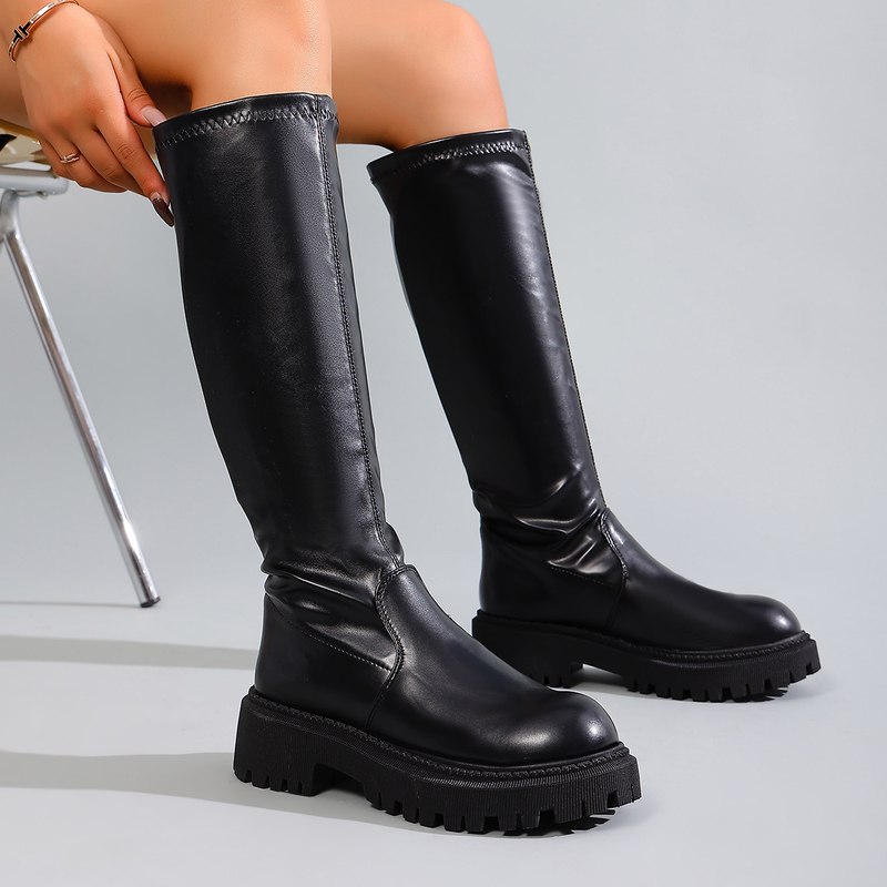 女靴子靴子韩版潮时尚保暖防滑长靴圆头粗跟